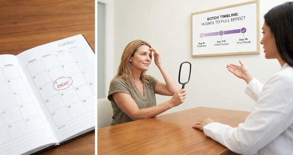 ברבים מהמקרים, המשתנה שקובע תוך כמה זמן הזרקת בוטוקס משפיעה תלוי בתגובה הביולוגית של השריר ובטכניקת ההזרקה. בדרך כלל מתחילים לראות שינוי ראשוני לאחר 3–5 ימים, אך תוך כמה זמן רואים את תוצאות הזרקת הבוטוקס באופן מלא? התוצאה הסופית מתייצבת לאחר כ־10–14 ימים. לכן, כאשר מתכננים טיפול לפני אירוע חשוב, כנס, ארוע משפחתי, חתונה, ברית, בר/ בת מצווה ההמלצה המקצועית היא לבצע את ההזרקה לפחות שבועיים ימים לפני האירוע.